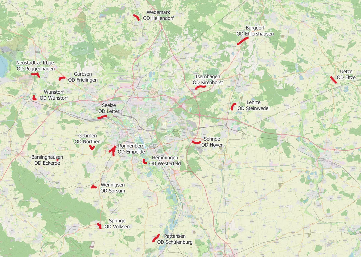 Im Umland betraf das 17 Ortsdurchfahrten von Kreisstraßen, deren Testphase im September beziehungsweise Dezember 2024 begann. In der Landeshauptstadt Hannover wurden vier Strecken einbezogen: